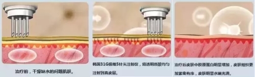 水润*是将透明质酸直接均匀注入真皮层,使皮肤水润柔嫩、光泽透亮、真正解决真皮层缺少水分的问题,并且达到恢复弹性及美白提升的作用。